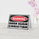 Varning BORN IGEN CHRISTIAN Greeting Card du kan anpassa på www.WarningSignShirts.com och har en röd och svart varningsskylt och BORN AGAIN CHRISTIAN i fet svart brev som varnar världen. Du kan också anpassa ditt eget varningstecken för hälsningskort med den text du vill ha.