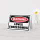 Varningskort för TRESOMES-hälsning i KÄRLEK kan du anpassa på www.WarningSignShirts.com och har ett rött och svart varningsskylt och KÄRLEK TRESOMES i fetstilt svart brev för att varna världen. Du kan också anpassa ditt eget varningstecken för hälsningskort med den text du vill ha.