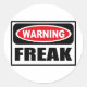 Varning FREAK Sticker som du kan anpassa på www.WarningSignShirts.com och som innehåller en röd och svart varningsskylt och FREAK i fet svart brev som varnar världen. Du kan också anpassa din egen varningsskylt med önskad text.
