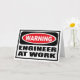 Varning INGENJÖR AT WORK Greeting Card (varningskort för arbetsförmedling) som du kan anpassa på www.WarningSignShirts.com och som innehåller en röd och svart varningsskylt och INGENJÖR AT WORK i fetstilt svart brev för att varna världen. Du kan också anpassa ditt eget varningstecken för hälsningskort med den text du vill ha.
