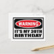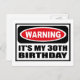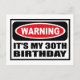 Varning: MY 30ÅRS FÖDELSEDAG-vykort som du kan anpassa på www.WarningSignShirts.com och som innehåller ett rött och svart varningsskylt och IT'S MY 30ÅRS FÖDELSEDAG i fet svart brev för att varna världen. Du kan också anpassa ditt eget varningsskylt vykort med den text du vill ha.