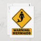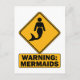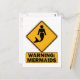 Denna diamantformade varningsskylt visar silhuetten på en sjöjungfru med texten "Varning: Sjöjungfruar" under läsning.