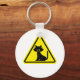 En varningsklocka med en katt på gultens bakgrund. Den här designen ser ut att vara effektiv i den här nyckelkedjan