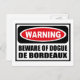 VarningsBEKÄNNANDE FÖR DOGUE DE BORDEAUX-vykort kan du anpassa på www.WarningSignShirts.com och har en röd och svart varningsskylt och BEWARE OF DOGUE DE BORDEAUX i fet svart brev för att varna världen. Du kan också anpassa ditt eget varningsskylt vykort med den text du vill ha.