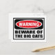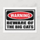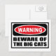 VarningsBEHÖRIGHET FÖR STORA CATS-vykortet som du kan anpassa på www.WarningSignShirts.com och som innehåller ett rött och svart varningsskylt och BEWARE FÖR BIG CATS i fet svart brev för att varna världen. Du kan också anpassa ditt eget varningsskylt vykort med den text du vill ha.