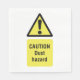 Ett varningsskylt som säger att Caution Dust är . Den här designen ser ut att vara effektiv på dessa Pappra servetter