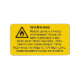 Fullständig varningsetikett för försäljning av handgjorda bivexljus, inklusive bijur eller biodling namn, kontaktinformation och flamvarningsikon över en gult, för produkter som saluförs på jordbruksmarknaden. "lämna aldrig obemannad, brandsäker bas, behålla bort från barn, husdjur, skjut, brännbara föremål och trimma veken."