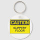 Ett varningsglidtecken på golv på gult. Den här designen ser ut att vara effektiv i den här nyckelkedjan