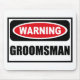 VarningsGROOMSMAN Mousepad som du kan skräddarsy på www.WarningSignShirts.com och presenterar ett rött, och svart varning undertecknar och GROOMSMANEN i djärva svartbrev för att varna världen. Du kan också skräddarsy din egna varning undertecknar Mousepad med texten som du önskar.