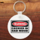 Varning CASHIER IN BAD MOOD-Nyckelring som du kan anpassa på www.WarningSignShirts.com och som innehåller ett rött och svart varningsskylt och CASHIER IN BAD MOOD i fet svart brev för att varna världen. Du kan också anpassa Nyckelringen för egna varningsskyltar med önskad text.