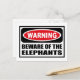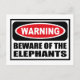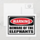 Varning BEKANT FÖR ELEPHANTS-vykortet som du kan anpassa på www.WarningSignShirts.com och som innehåller ett rött och svart varningsskylt och BEKÄNNETECKEN FÖR ELEPHANTS i fet svart brev för att varna världen. Du kan också anpassa ditt eget varningsskylt vykort med den text du vill ha.