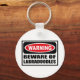 VarningsBEHÖRIGHET FÖR LABRADOODLES-Nyckelringen som du kan anpassa på www.WarningSignShirts.com och som innehåller ett rött och svart varningsskylt och BEKÄNNETECKEN FÖR LABRADOODLES i fet svart brev för att varna världen. Du kan också anpassa Nyckelringen för egna varningsskyltar med önskad text.