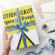 En gult som varnar för farliga maskiner. Den här designen ser ut att vara verkligen på dessa figursättningsPappra