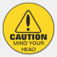 Varningsskylt Lägg märke till huvudet. Anpassade gult runt klistermärken med texten "Varning" och "Mind din anpassade" och triangel med utropstecken varningstecken på lakan. Det här är ditt huvud-varningsetikett som är fullt anpassade. Lägg till texten/texterna och bilder!