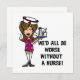 En söt sjuksköterskedesign med en brun sjuksköterska med en bricka med vatten och en pitcher och text som säger "Vi skulle alla bli värre utan sjuksköterska med T-shirts, påsar, mugg, klistermärken, kort, magneter och andra sjuksköterskekläder och presenter.