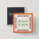 Knappen är designad för en vegan till bära. Det har ord - BE VEGAN, vänligen - i grönt på vit bakgrund och är dekorerat med färgade grönsaker och en orange gräns.
