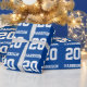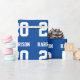 Varsits, eget namn, blått och vitt presentpapper