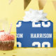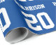 Varsits, blått och vitt, anpassat namnnummer i monogrampresenten Svällning Papper. Varsitetsidrotten stil. Anpassa den med ditt namn, din ålder, ditt år, ditt nummer eller ditt idrottslag namn.