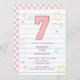Pastell varsity snygg lapp anteckningsbok 7-års inbjudan med anteckningsbok doodles och rutig baksida.