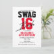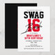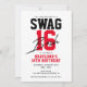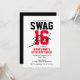 Denna inbjudan i varsity-stil till 16-årsfest är perfekt för alla som vill tillföra en touch av kul och ungdomlig energi till sin fest. Designen har djärva, iögonfallande färger och ett klassiskt "varsity"-typsnitt som får mottagaren att känna sig som en del av laget. Inbjudan innehåller alla nödvändiga detaljer, inklusive datum, tid, plats och RSVP-information. Denna inbjudan är säker på att sätta tonen för en minnesvärd och spännande firande av denna milstolpe födelsedag. Om du inte firar en 16-årsdag kan du ändra åldern på inbjudan efter eget önskemål.