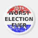 De värsta kandidaterna någonsin.. Cirkel i rött, blått och vitt, text i svart med vita konturer. Den trycksatta effekten tillämpas på konstruktionen.
