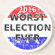 De värsta kandidaterna någonsin.. Cirkel i rött, blått och vitt, text i svart med vita konturer. Den trycksatta effekten tillämpas på konstruktionen.