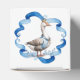 Fira din lilla födelsedag med ett charmerande vattenfärgstema! Denna förtjusande illustration visar en regalgås som bär baby blue jacka och ett gyllene krona och som lätt står på en vit bakgrund. Fintvätt av blå blommigtar vid fötterna ger en mjuk, visuell beröring. Perfekt för inbjudningar, dekorationer eller förskoleutskrifter ger den här designen en ljuv känsla och elegant till alla första födelsedagsfiranden.