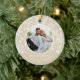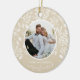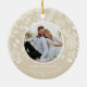 Rund keramisk Julgran-dekoration har ditt favoritfoto omgivet av vita löv, bär och prickar på en elfenbensbakgrund på fram- och baksidan. TIP: Ladda upp en högupplöst foto som innehåller dig i mitten. Ornament gör minnesvärda gåvor till familj och vänner eller skapar för dig själv. MER färg och material som finns i vår butik.