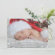 Den här eleganten dubblor fotofödelseannonsering som ett bildkort för helgdag med frasen "Vår första jul". Anpassa den med dina nyfödda foton på framsidan och baksidan!