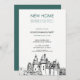 Inflyttnings- partyinbjudan. Vårt hem är vårt slott med avbildar av slott.