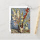 Ett finkonstkort med den postimpressionistiska målningen, Vas med gladioler och kinesiska astrar (1886), av Vincent van Gogh (1853-1890), en holländsk konstnär. Ett stilleben med en vas med vita, gula och röda gladioler mot en blå bakgrund.