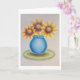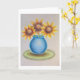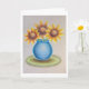 Gratulationskort med en klassisk illustration av en glädjande vas med solrosor. Perfekt för att skicka alla typer av hälsningar, från ett enkelt hej till sympatiyttringar.