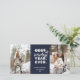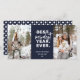 Västeraste året någonsin, humor, marinblått 2-fotokort. Kortfunktioner, mönster-stöd för vit bauble-sträng i hand plockade och tre linjer för malltext för hälsning, namn och år.