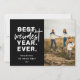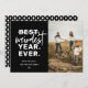 Västeraste året någonsin, helgdag, svart fotokort. Kortfunktioner, mönster-stöd för vit bauble-sträng i hand plockade och tre linjer för malltext för hälsning, namn och år.