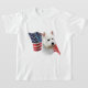 USA! Amerika! Skriv ditt pride med den här patriotiska bakgrunden i fantastisk flagga med den här AKC-hund aveln, Highland White Terrier i framkanten. Visa ditt pride med den här designen på en t-shirt, mugg och mycket, mycket mer!