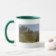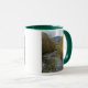 Två fotografier av bäck och bergen i Väster Virginia, på olika mugg.
