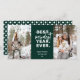Hårdast någonsin, 2021 helgdag humor, jägare grönt 2-fotokort. Kortfunktioner, mönster-stöd för vit bauble-sträng i hand plockade och tre linjer för malltext för hälsning, namn och år.