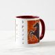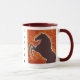 En perfekt mugg för hästälskaren med "fri ånd" som visar en kritdesign av en upprätt vild häst. Bakgrunden är en varm, luddig, färg som ger den en västerländsk flärd. Texten "Fri ånd" finns på sidan av koppen, men kan ändras.