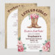 Sätt i sadeln för den ultimata tjejresan med denna lantliga rosa cowgirl-destination tjejresa-skötselfest-inbjudan!