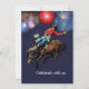 Det här är en 2-sidig inbjudan med en cowboy som rider en bockande häst på framsidan med fyrverkerier i bakgrunden och massor av textfält på baksidan för att fylla i detaljerna för din fest. Åldern är tänkt att se ut som ett märke på hästens höft.
