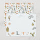 Söt barnbrevkort med handritad illustration av cowboy-tema motiv inklusive kaktusar, orm, cowboyhatt, cowboystövlar, etc.