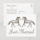 Sätt den roliga tonen för dina bröllopsannonser med detta västerländska bruna och vita handritade häst Nygifta bröllopskort. Ryttarbröllopskort är perfekta för rustika, västerländska eller landsbygdbröllop. Vänligen scrolla ned för att se matchande hästprodukter du kan tycka om.