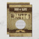 Anpassningsbara inbjudningar för din speciella ”västerländska” fest. DESIGN: Ordet ”wanted”, i stora bokstäver, sticker ut livligt mot en gammal väderbiten, vintage pergamentpappersbakgrund med ett damaskmönster ingraverat, och kantas upptill och nedtill av två mörk chokladbruna horisontella band. Det nedre bandet har två palominohästar som står nos mot nos, och de är omgivna av grungeblommiga virvlar i creme och elfenbensvita färger. Direkt under ”wanted”-skylten finns en fotomall där du kan ladda upp ditt eget fotografi. ANPASSA DEN: Ändra texten så att den passar din tillställning; ändra färg/stil och storlek på teckensnittet; lägg till ytterligare mallar eller ta bort de som inte behövs och ladda upp ”flyktingens” foto och/eller ditt företagslogotyp för att göra den unik. IDEALISK FÖR: ”country- och västerländska” evenemang; ”västerländska tema”-fester; ranch- och rodeo-event; grillfestligheter