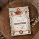 Sätt dig i sadeln för en vild resa med vår västerländska inbjudan, perfekt för din första rodeo eller cowboyjubileum. Tillverkad i rustika bruna nyanser, den sätter tonen för ett evenemang fyllt av äventyr på gränsen. Lassoa in dina gäster med denna autentiska design, garanterat att föra Vilda Västerlandets anda till varje tillställning.