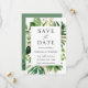 Vatercolor Greenery Tropical Handflatan Löv Bröllo Spara Datumet