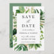 Med det här Spara datumkortsfunktionen kan du meddela ditt kommande bröllop att Grey Tropical Handflatan Lämnar med enastående kalligrafiskript som omger dina uppgifter. Det här är den perfekt lilla påminnelsen för din stora dag i stil du alltid velat ha.