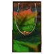 Ett snigel korsar puddeln vatten som hålls i en sänkt höst löv i en liten båt, medan ett annat snigel väntar med förväntan på andra sidan bassäng.