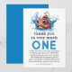 Skicka ett stort " tack " med detta söta vattenblåa fisk-tackkort för 1-årsdag! Med en söt fiskdesign och havsinspirerade färger är det det perfekta sättet att visa uppskattning till gäster som gjorde din lilla enas speciella dag ännu mer minnesvärd. Personifiera det med ditt meddelande för en genomtänkt touch!