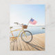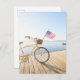 Denna fantastiska Getty Images-fotografi visar en cykel med en amerikansk flagga i korgen stående på en brygga vid sjön.