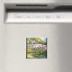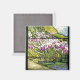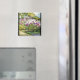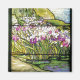 Fin tiffany-glasreproduktion. En Vatten Garden med vild Iris Flowers och löv i en damm är på den här magneten med fastnat glas.